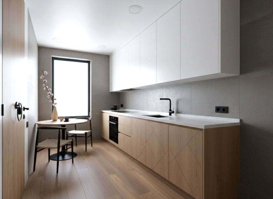 Мебель ставится свободно: можно организовать спальню, кабинет, лаунж-зону или студию.